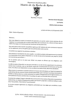 Le vendredi 20 septembre 2019, Monsieur Demir Mustapha a déposé en mairie une pétition recueillant 119 signatures afin de demander le déplacement de la station d'épuration (STEP), actuellement en cours de construction sur la commune de La Roche de Rame.