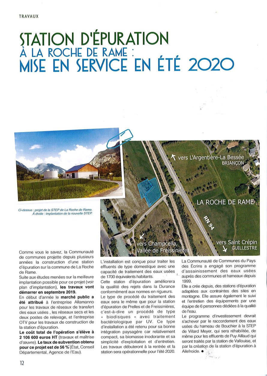 La Communauté de Communes du Pays des Écrins construit une station d’épuration (STEP) sur la commune de la Roche de Rame. Cet ouvrage permettra de traiter