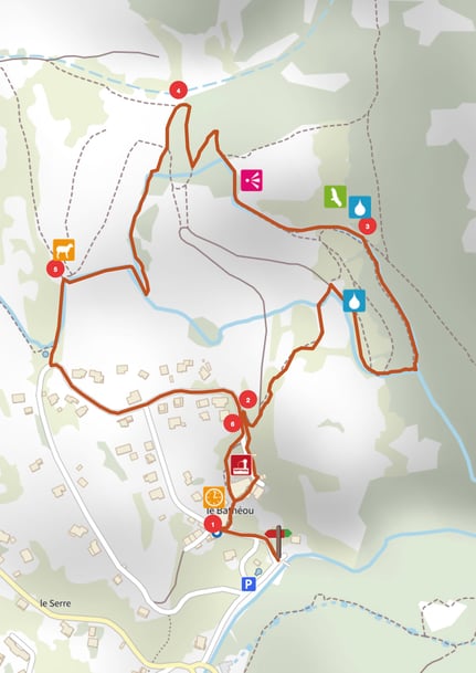 Débuter la balade en se dirigeant vers le pont du torrent de Bouchouse. Dos à ce pont, prendre la rue en face.